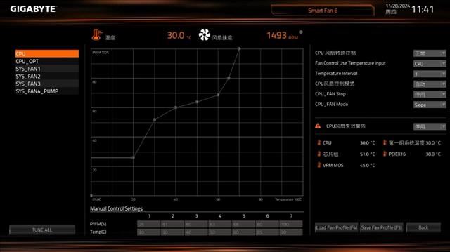 smartfan功能可以让与用户自有调整风扇转速曲线,以获得更好的静音表现或者散热效果。