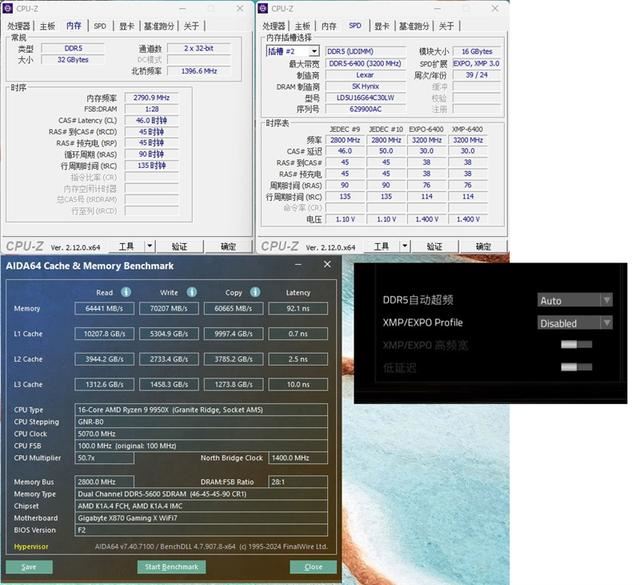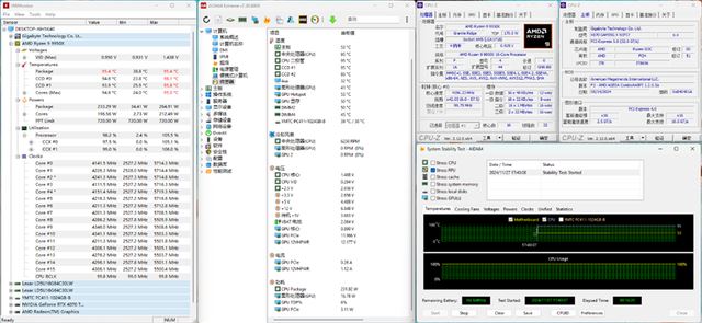 使用aida64对技嘉x870 gmaing x wifi 7主板和锐龙9 9950处理器进行烤机测试。