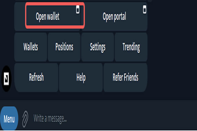 而在添加bot之后,需要点击创建钱包命令,为自己设置一个和tg绑定的钱包。