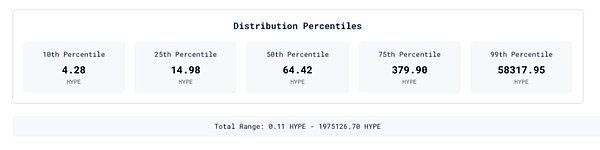按照 hype 超过 7 美元的现价,hype 空投了总价值近 20 亿美元的代币,平均每地址近 2 万美元!(近 400 美元的中位数更能反映排除巨鲸后多数参与者的收益情况。)