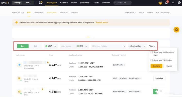 bybit购买usdt可以通过新购卡/借记卡购买、usdt交易以及p2p交易3种方式,下文亿p2p交易为例,详细说说交易所bybit买u的具体教程: