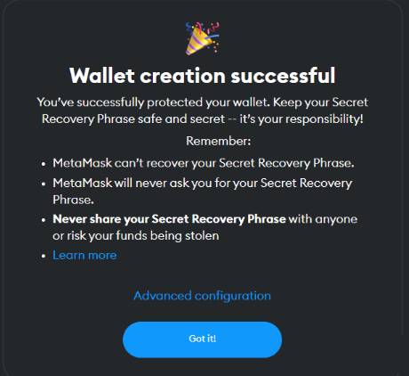 您的自托管钱包已准备就绪。您现在可以连接至 defi 平台,例如 uniswap、pancakeswap 等。使用此类服务时,请务必小心谨慎。连接至恶意 dapp 或网络钓鱼网站可能会导致资金损失。