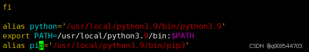vim /etc/profile alias pip='/usr/local/python3.9/bin/pip3' source /etc/profile pip --version