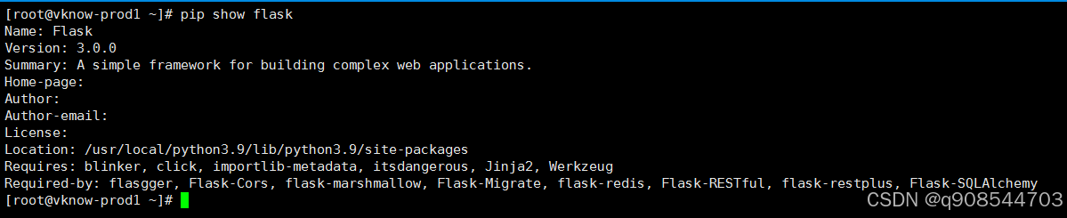 pip show <package_name>:可以查看指定包的详细信息,包括名称、版本、作者、许可证、依赖项等。例如,pip show flask会显示flask包的相关信息: