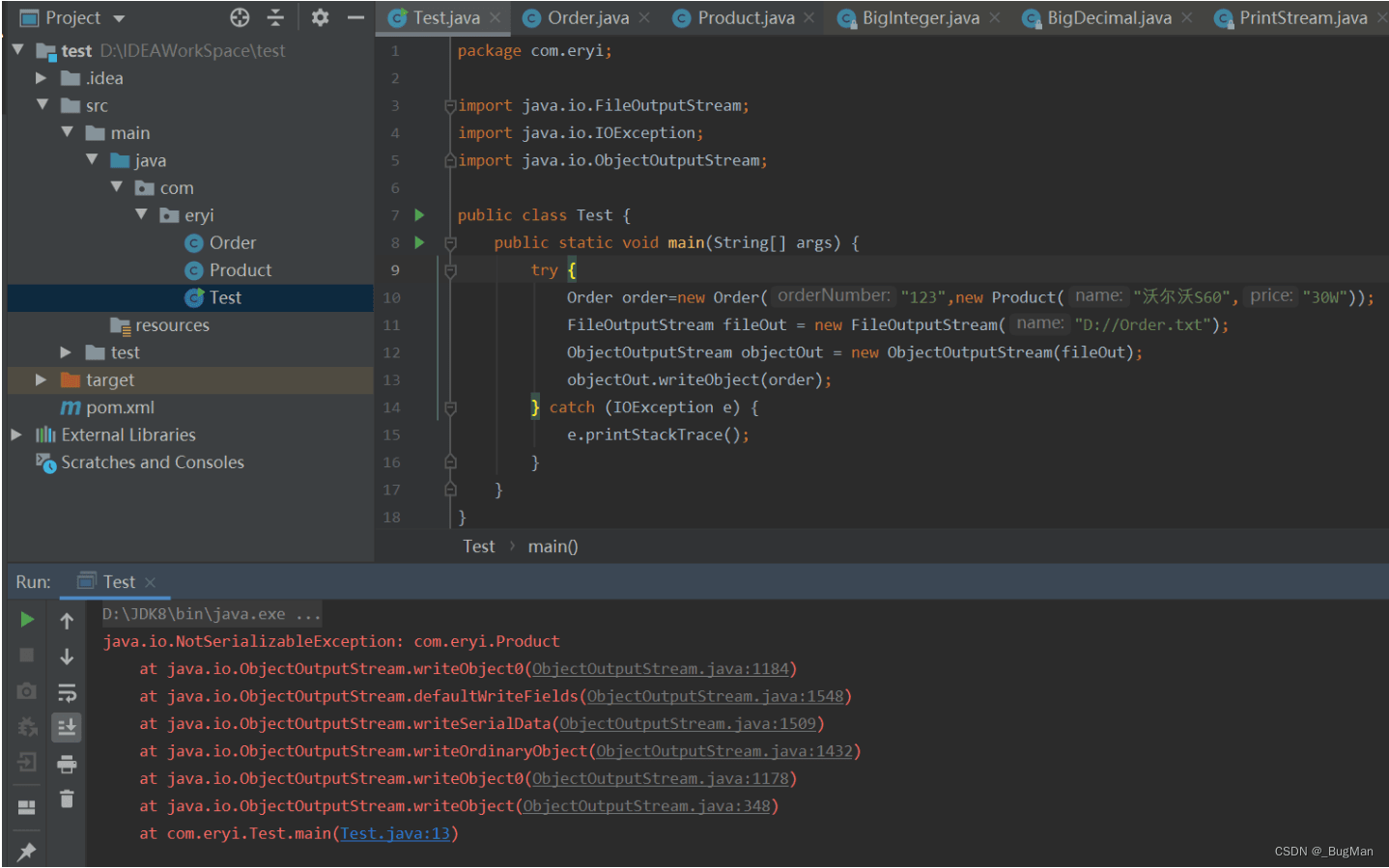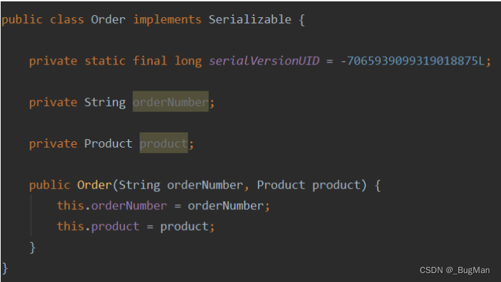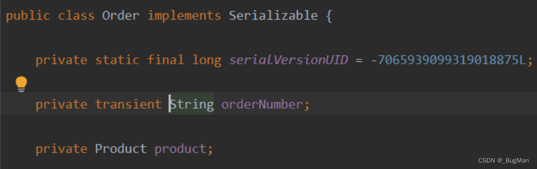 订单对象中包含一个产品对象,order实现了序列化接口,但是product没有实现序列化接口: