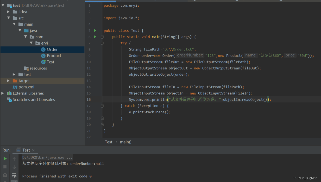 以上一节我们在d盘下生成了一个名叫order.txt的序列化文件为例,我们来读一读java的序列化文件。