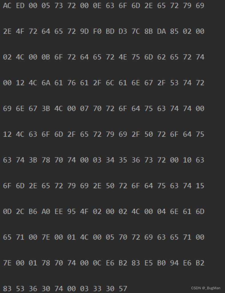 9d f0 bd d3 7c 8b da 85 02 00 02 4c 00 0b 6f 72 64 65 72 4e 75 6d 62 65 72 74 00 12 4c 6a 61 76 61 2f 6c 61 6e 67 2f 53 74 72 69 6e 67 3b是一个对象的实例数据,包含了对象的状态信息。 - 对象数据: