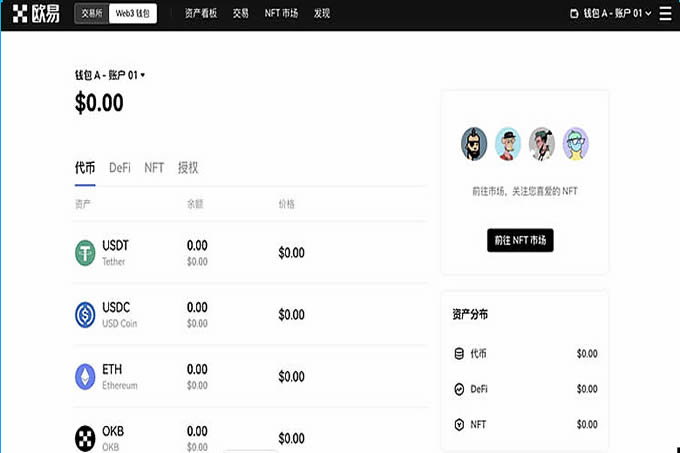 okx web3钱包 是由okx交易所推出的一款去中心化钱包,整合在okx交易所app中不必另外下载,介面简单直觉化方便操作,用户可以在钱包中进行转帐、交易、理财、nft交易、浏览资讯、管理多链资产等功能。