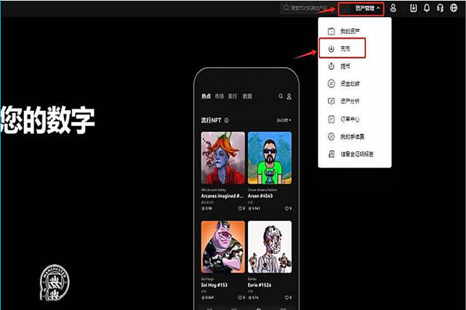 1、登录欧易交易所(没有账号的投资者可以点此注册账号进行交易),选择首页资产管理,选择充币。