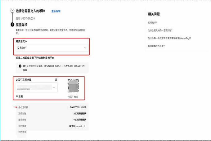 3、在充币详情页,选择【将资金充入】的账户—【复制地址】。