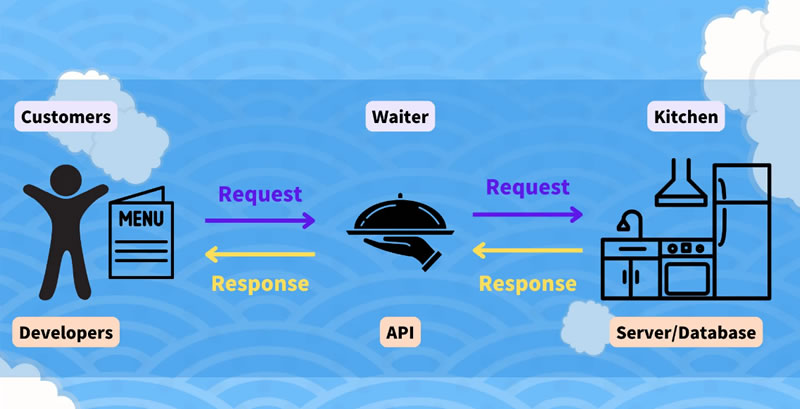你可以把api 想像成餐厅的服务生:当你(开发者或客户)想点餐时,不需要亲自进厨房(后端系统)告诉厨师该做什么。