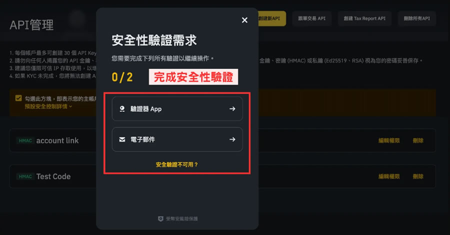 币安api 设定步骤一:注册币安并完成kyc 身分认证