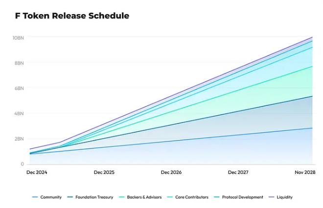 50,000,000 f,占总供应量的 0.5%,将在 tge 中解锁。剩余部分将在未来四年内解锁。