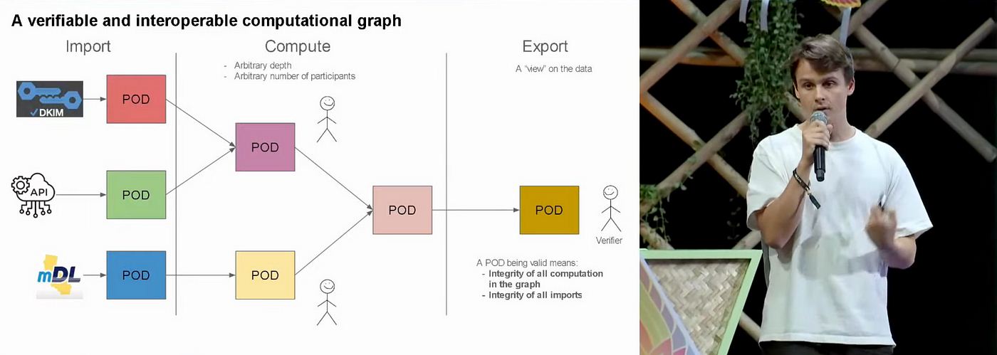 zupass 建立在两个关键技术之上:provable object data (pod)与general purpose circuit (gpc)。这两项技术支撑了像是meerkat、frog crypto 和devcon 门票验证等应用,实现了数据的隐私验证与互操作性。