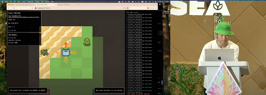 frog zone 是0xparc 在devcon 展示的技术游戏,旨在实践最尖端密码学应用,展示全同态加密(fully homomorphic encryption, fhe)和多方计算(multi-party computation, mpc)技术如何结合,创造出具隐私保护和分布式特性的应用环境。这款游戏作为首个多用户mp-fhe 应用,为分布式隐私计算和应用开发提供了重要的技术示范。