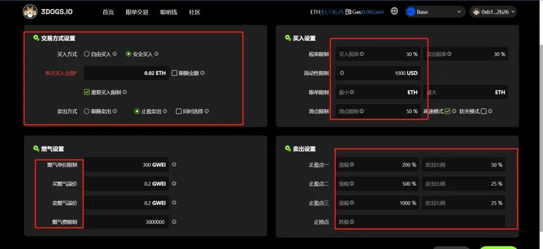 设置固定买入和最大跟买:用户可以设置每笔跟单交易固定买入金额,最大跟买意为如果跟单地址买入金额小于设置的最大跟买,则用户地址按固定买入金额进行购买;如果跟单地址买入金额超过设置的最大跟大,则用户地址按设置的最大跟买进行购买;