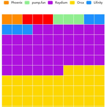 无论是否是秘密发布,pump.fun发布还是预售代币,绝大多数meme币流动性池都来自raydium。大量meme涌入市场便增加了其市场份额,去中心化交易所占据solana当前链上交易量的相当大一部分比例。