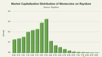 在较低的市值波段中,仍然存在明显的密度,这表明许多规模较小、不太理想的代币难以获得显著吸引力。部分原因可能是由于达到饱和、这些代币被引入市场的时机欠佳,或是由于明显缺少叙事、独创性和适当的宣传。尽管很不明显,但在多个中心化交易所上市的极高市值的meme密度更集中,这些meme早在pump.fun出现之前就已经出现了。