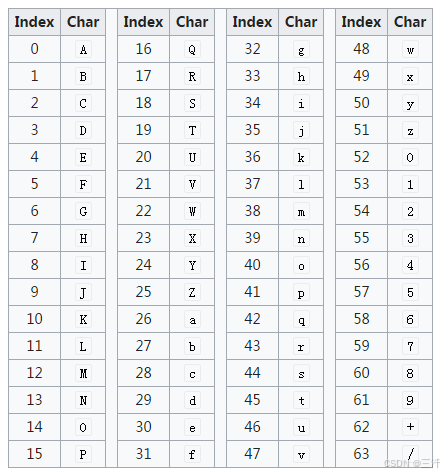 base64编码表: