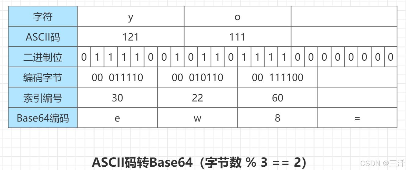 示例2,只有2个字符时: ascii编码yo,base64编码ew8=。