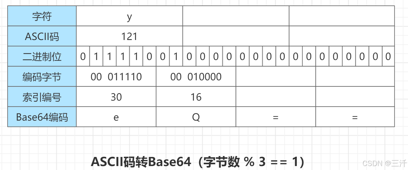 示例3,只有1个字符时: ascii编码y,base64编码eq==。