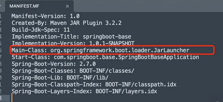 spring boot 启动类加载器使用的 launchedurlclassloader 首先读取 manifest.mf 中的其他属性,例如 start-class(标识应用程序的实际主类)和 spring-boot-lib(指向内部依赖库的位置)。