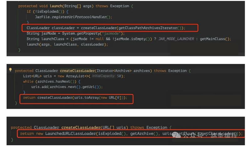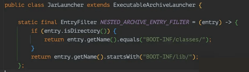 加载器区分 boot-inf/classes 中的应用程序类和 boot-inf/lib 中的依赖库,并分别处理它们,将它们添加到类加载器的搜索路径中。