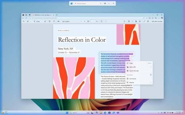 新增智能文本操作,包括“概括”和“改写”功能,目前在 snapdragon 平台上支持英语,amd 和 intel 平台支持即将推出。