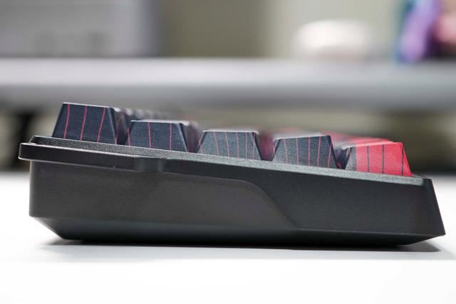 底壳为定制的船壳,自带符合人体工学的倾斜高度,输入会比较轻松。