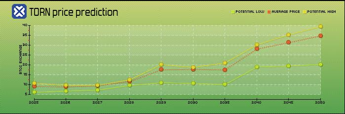 从长远来看,稳健的基本面最终可能会推动torn 价格上涨,并最终在2050 年达到最高$ 39.3424。