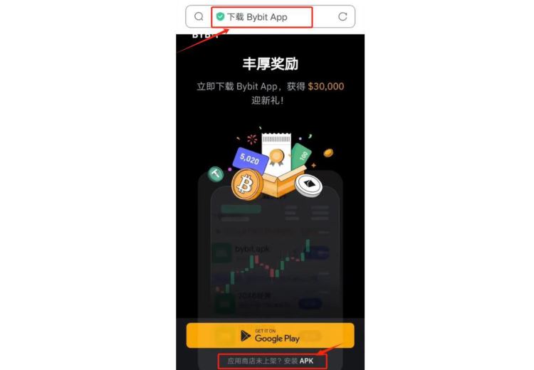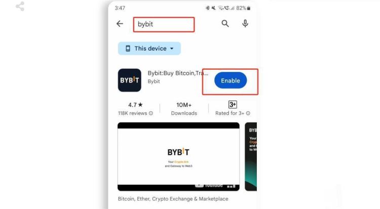 在android设备上打开google play商店,并在搜索栏中输入bybit。在安卓手机上,需要下载bybit的apk文件,因为应用商店上没有bybit app。