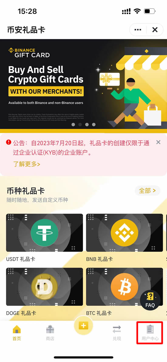 - 个人币安账户仍可发送和兑换礼品卡。如需购买礼品卡,请访问礼品卡商户。