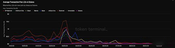现在在 arbitrum 上交易的成本比在 solana 上便宜约50%。事实上,在前几个 l2 上交易的成本都更低。