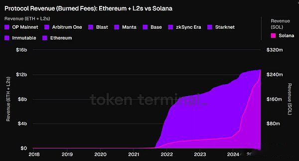 solana历史交易费用的 50%(2.47 亿美元)被销毁(仅占以太坊的 2%)。