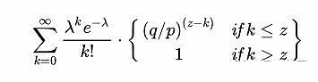 to get the probability the attacker could still catch up now, we multiply the poisson density for each amount of progress he could have made by the probability he could catch up from that point: