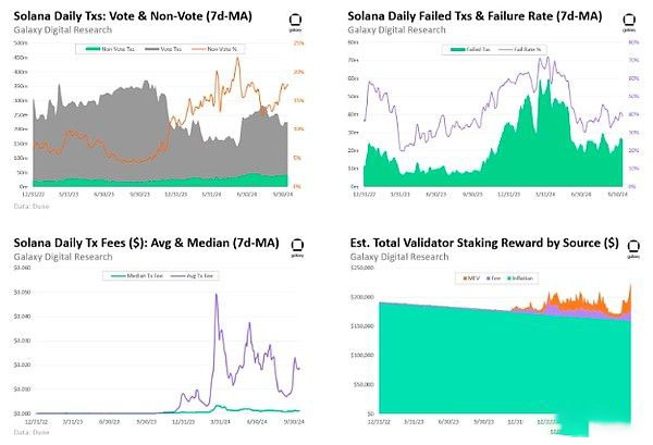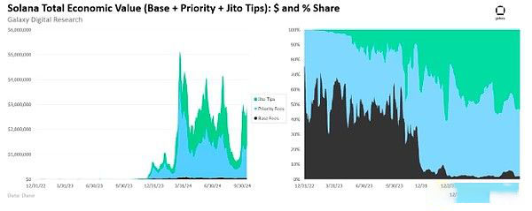 投票费用也应排除在计算 solana 的总经济价值之外,该总经济价值是基本费用、优先费用和 jito tips 的总和(数据显示在上一节中)。