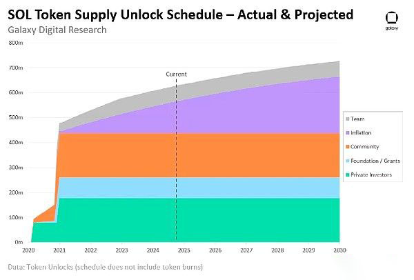 解锁:继 2021 年 1 月向私人投资者和基金会进行重大悬崖解锁,以及于 2023 年 1 月完成团队解锁之后,除了向质押者支付的标准通胀外,没有其他针对 sol 供应的程序解锁。