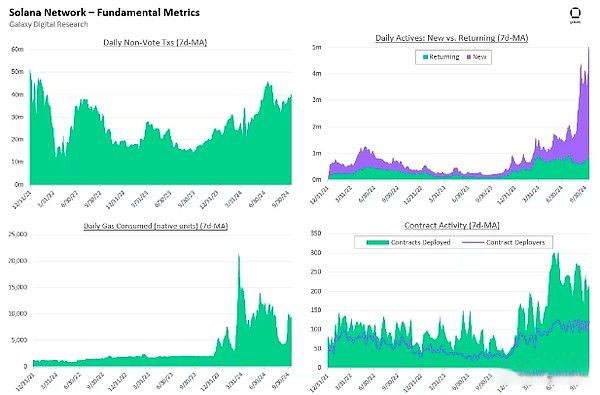 由于投票交易是在链上进行的,并且每个验证者都会在每个 slot 上投票(每秒产生超过 2k 票),因此非投票交易应被视为 solana 用户活动的更好代表。