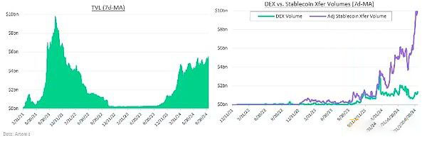 面向消费者和支付的区块链(例如 memecoin 和 nft):base 是第二受欢迎的 memecoin 交易平台,tron 是最常用的支付平台之一,ton 区块链采用面向移动设备的方法来吸引零售用户(与 solana 的 saga 和 seeker 手机竞争)。