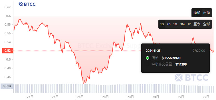 截止2024-11-25 02:04:43,恒星币售价为1 xlm= 0.5358 美元(约新台币17.28 元),较过去24 小时上涨了3.02%。