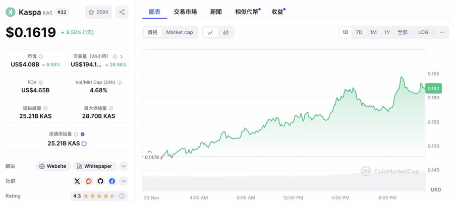 目前市值40.8 亿美元的kaspa($kas)采用创新的有向无环图(dag)架构,透过ghostdag 协议实现每秒处理多个区块的惊人性能。这项突破性技术不仅大幅提升了交易处理速度,更为开发者提供了解决传统区块链限制的全新方案。值得注意的是,kaspa 的代币发行机制采用独特的音阶灵感设计,突显其对精确性的重视,未来更可望提升至每秒处理100 个区块的处理能力,目前交易价格为0.162 美元。