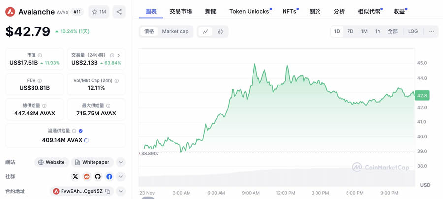 市值达175.1 亿美元的avalanche($avax)则采用创新的三链架构,包括交易链(x-chain)、合约链(c-chain)和平台链(p-chain),每条链都专注于特定任务,实现每秒超过6,500 笔交易的处理能力。这种设计不仅确保了高度去中心化,更支援以太坊互通性,特别适合去中心化金融(defi)应用场景,目前交易价格为42.79 美元。