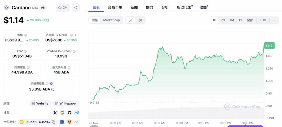 市值399 亿美元的cardano(ada)则采用分层式区块链结构,搭配权益证明(pos)共识机制,为去中心化应用和智能合约带来崭新的模组化概念。透过这种设计,代币持有者可以参与网路更新决策,platform 已在农产品追踪到学术认证等多个产业展现实际应用价值。特别是在2021 年完成alonzo 硬分叉升级后,cardano 持续保持在区块链技术创新的最前沿,目前交易价格为1.14 美元。