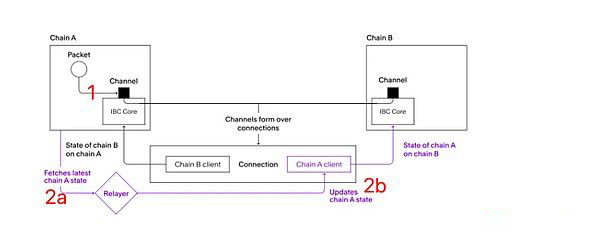 polymer hub上的vibc模块(polymer的layer 2)该模块接收layer 2上的vibc核心事件,并将其翻译为标准ibc模块可以理解的内容,类似于翻译外语信件并告知当地人如何行动。