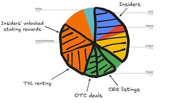 4、tvl租赁:大型鲸鱼或提供流动性的机构通常能获得独家、更高的收益。虽然普通用户可能对 20% 的年化收益感到满意,但一些鲸鱼通过与基金会的私下交易,悄悄地以同样的贡献赚取 30% 的收益。这种做法对于确保早期流动性可能是积极和必要的。然而,向社区披露代币经济学中的这些交易至关重要。
