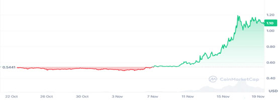 但与卡尔达诺一样,随着当选总统唐纳德·特朗普宣布美国的加密项目将获得巨额税收优惠,ripple的价格翻了一番。这导致xrp价格飙升至今天的1.10美元。