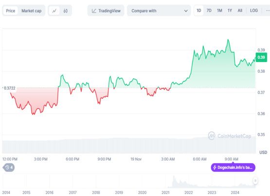狗狗币目前的市值为567.8亿美元,交易量强劲,表现出非凡的势头。加密货币分析师taiki maeda预测狗狗币将超过solana,这突显了机构对模因币日益增长的兴趣。这一预测源于狗狗币在各种平台上的一致性能和不断提高的采用率。