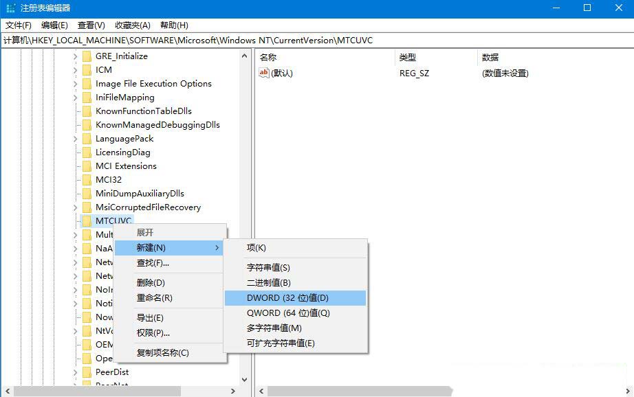 2、接着,在打开的界面中,依次点击展开“hkey_local_machine\software\microsoft\windows nt\currentversion\mtcuvc”。
