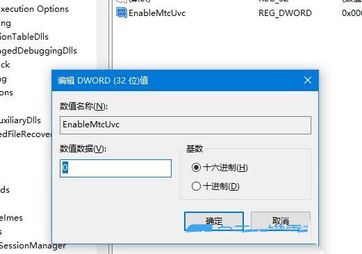 5、随后,双击打开“enablemtcuvc”,设置“数值数据”值为0,点击确定即可。