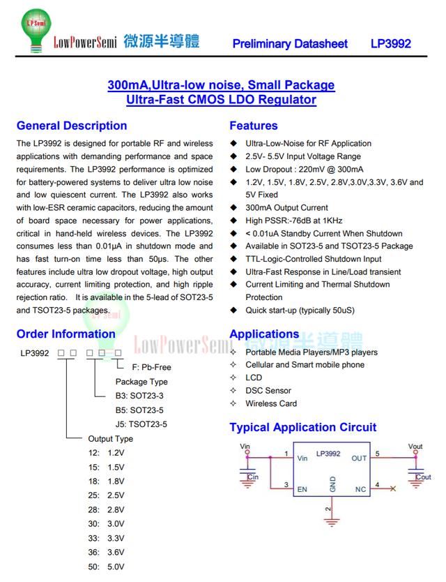 lps微源半导体lp3992详细资料图。